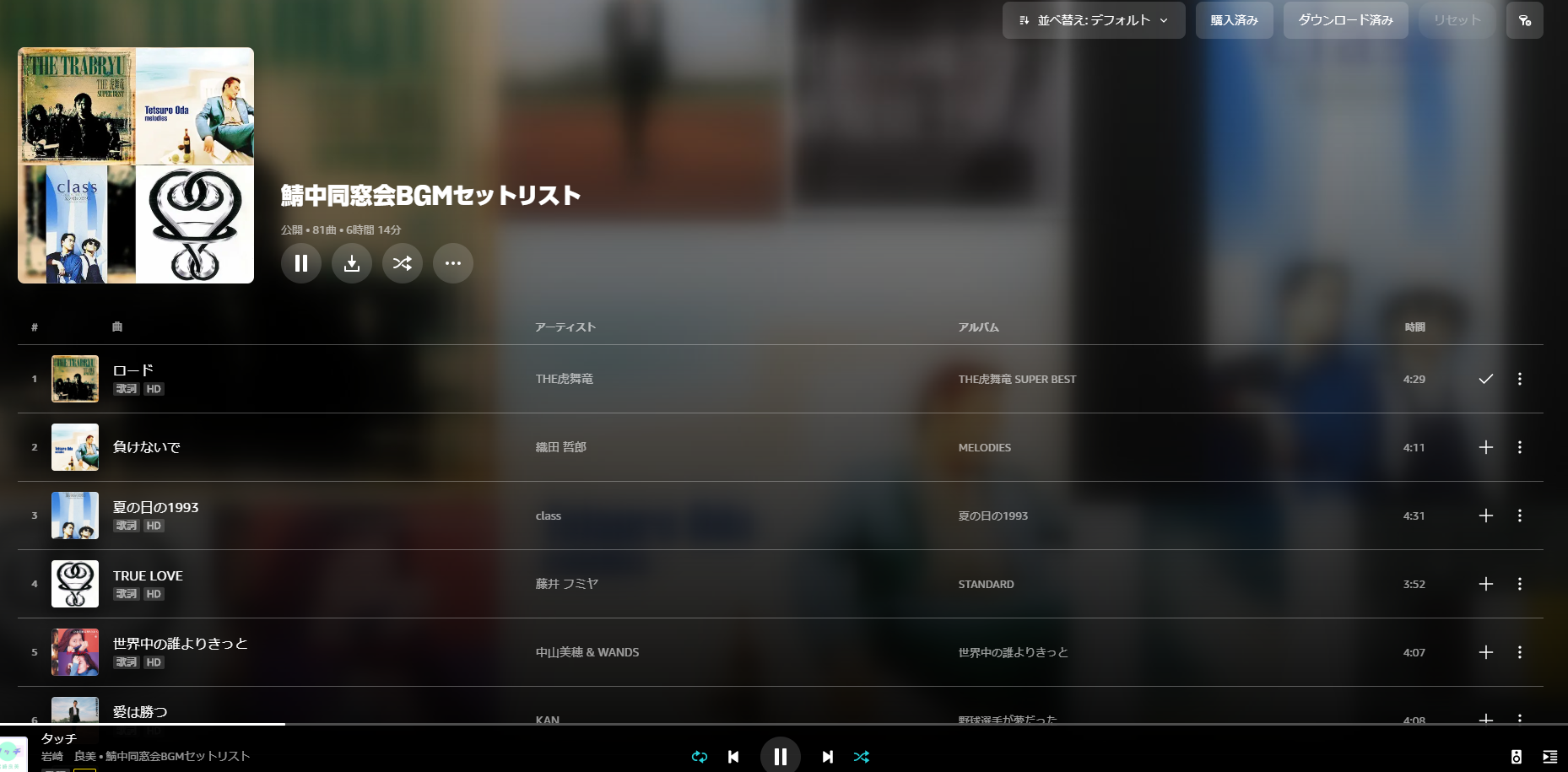 2025/8/10(日)に開催された、1993年卒の鯖江中学校同窓会で使用したBGMセットリストです