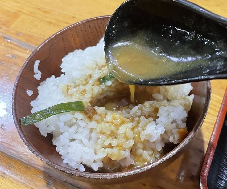 お腹は7~8分程度で、普段ならこのまま帰宅するところなんだけど、この日はなんとなく一考。しまして。結局、白飯を追加オーダー。