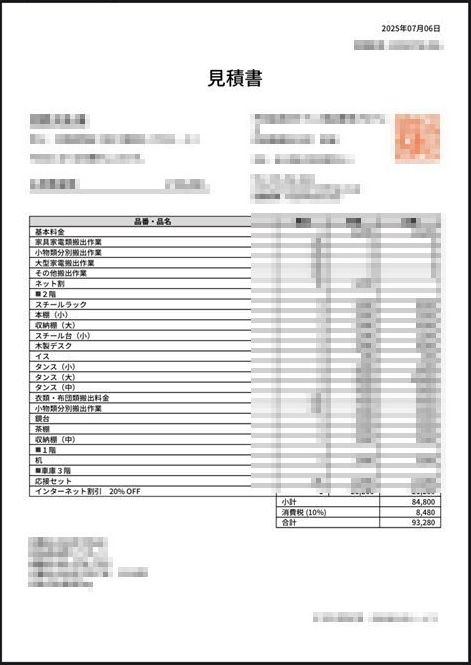 見積額はザックリ税抜き8万円くらい。量が多いので、もしかしたら1回でいけないかもしれないと告げられ、その場合は2回目もありうるという前提でお願いしました。
