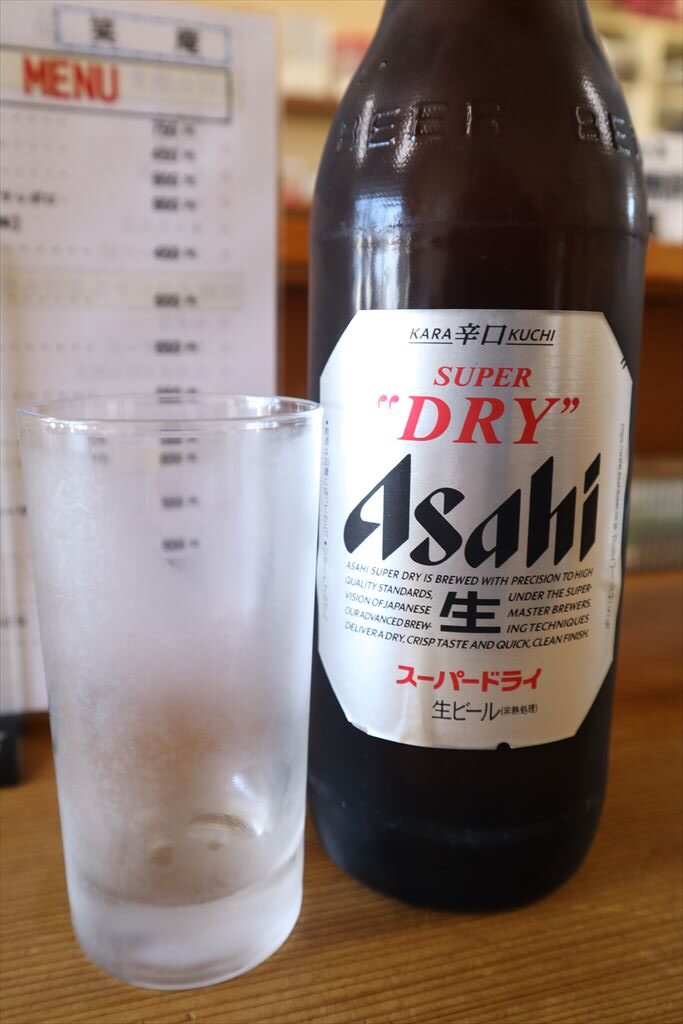 着席と同時に瓶ビール(アサヒ)とソース焼きそばをオーダー。お目当ての焼きそばの前にビールを開封。これをアテは焼きそばで飲み(やり)たかったんですよ。