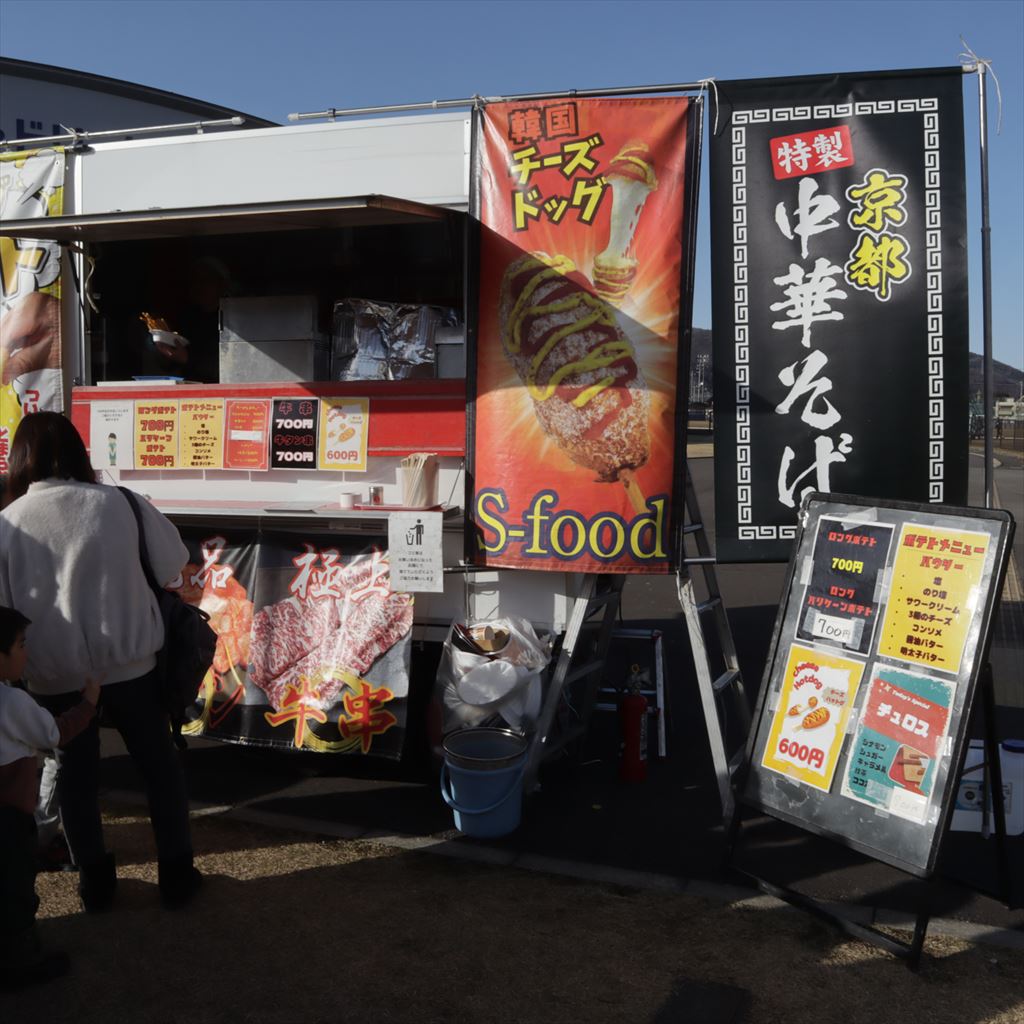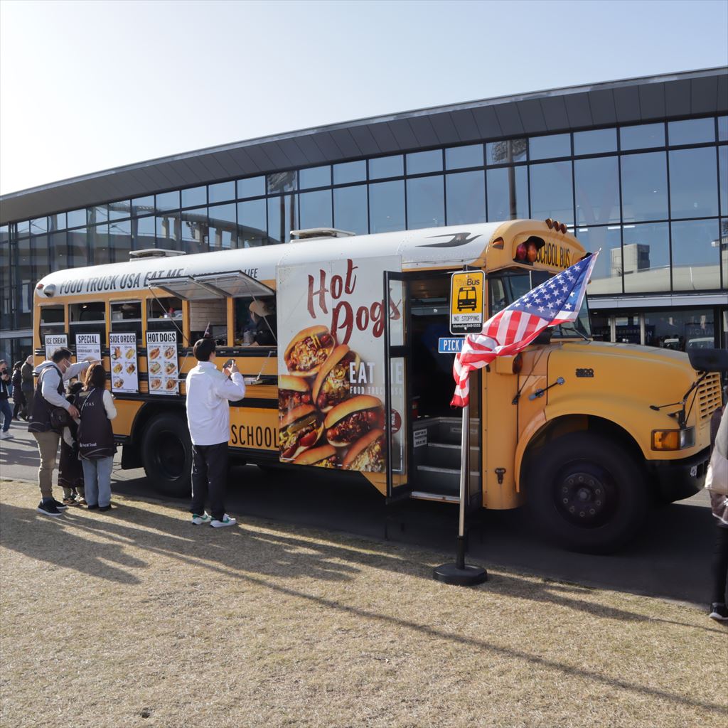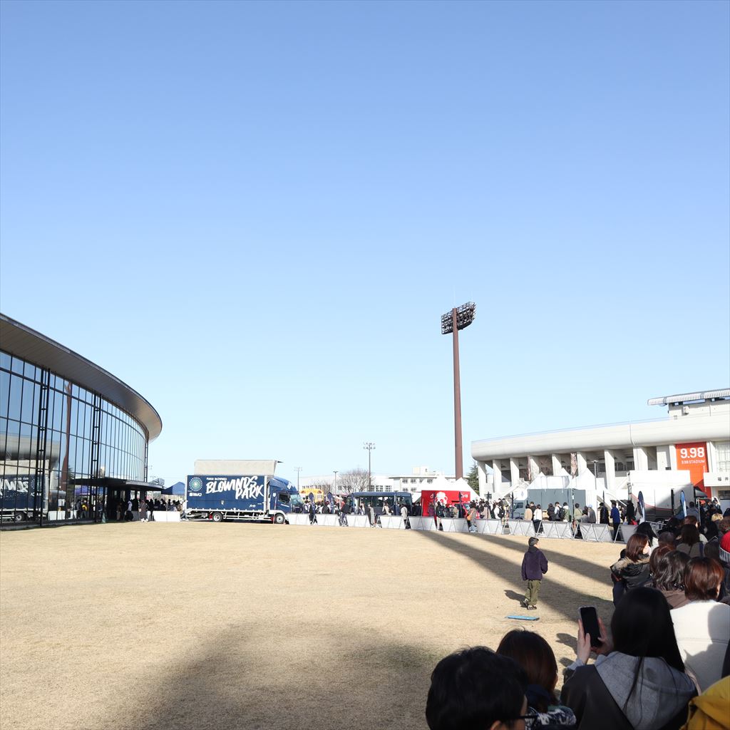 いったん入場して荷物を自席に置いた後、この日はキッチンカーがたくさん来ていたので再入場券をもらった上で、いったん外に出ました。会場内の熱気がすごくて暑かったので、涼む目的もありました。