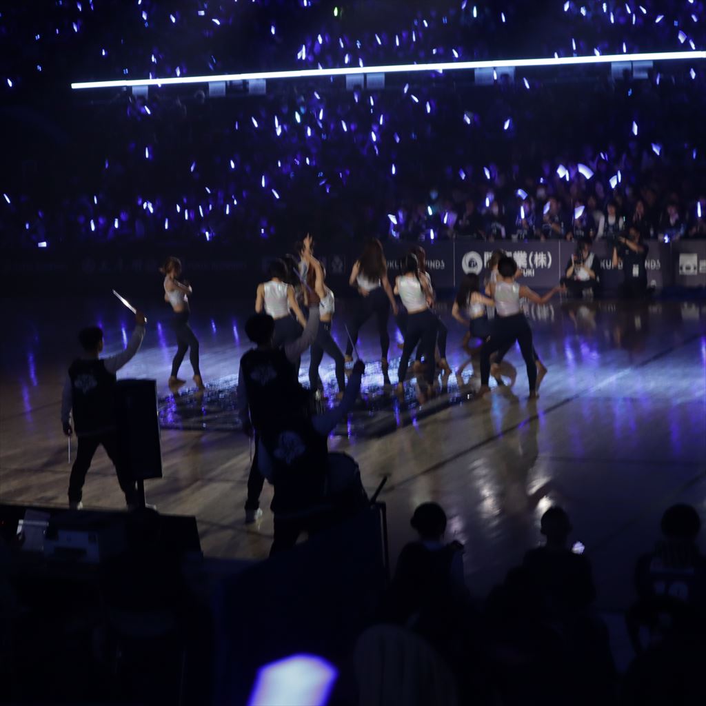 キレッキレのダンスと照明の具合がいいですよね~。テンション上がります。ゲーム中は応援に熱中してて写真がありませんので、インターバル中などで撮影した写真です