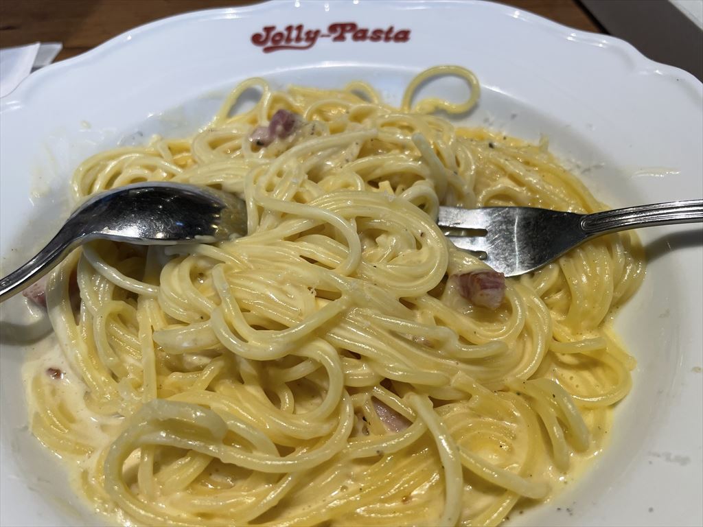 カルボナーラ。これがまた美味いんですよ。味が濃い目で僕の好みの味です!