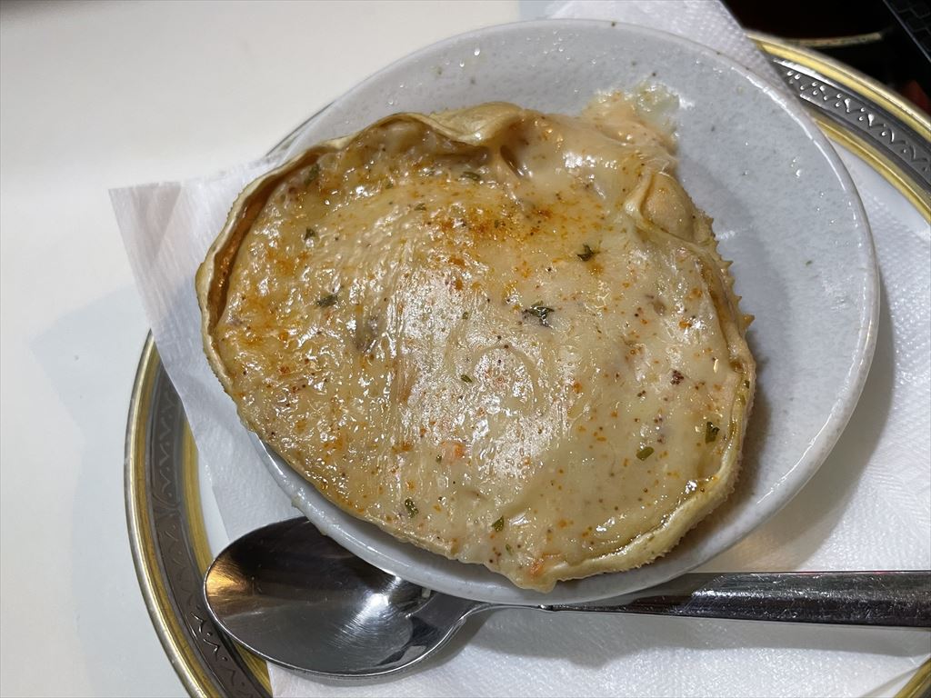 これはカニグラタンです。この店の人気メニューで、毎回注文します
