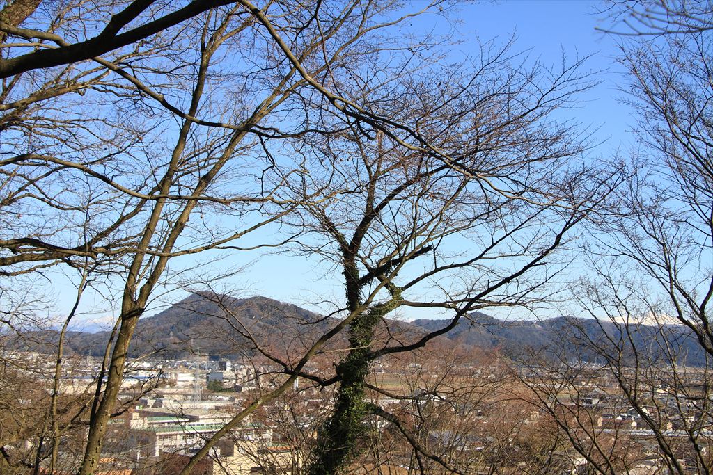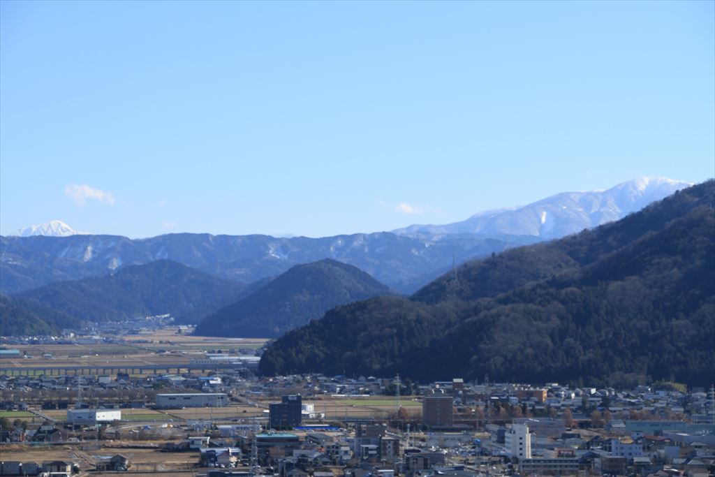 展望台に到着です。展望台に到着すると、まず目の前に日野山が視界に飛び込んできます。ほんと、天気が良い。風は冷たいけど気温がそこそこあるので気持ちよかった