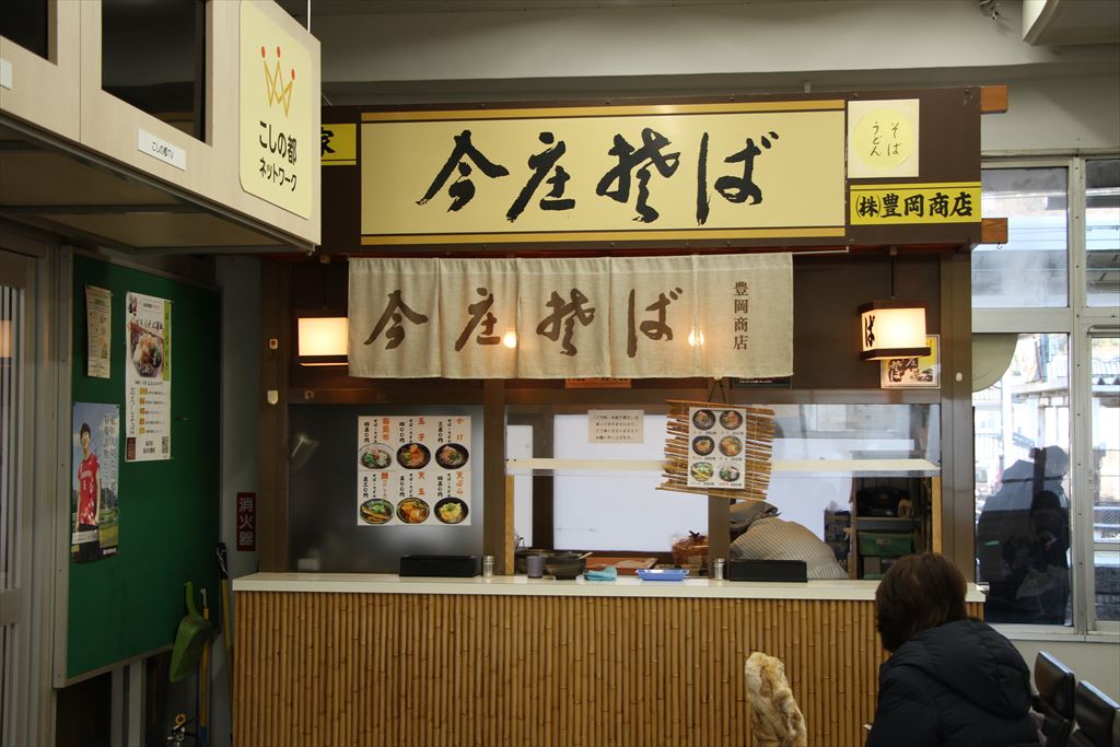 駅に入って、まずはこの今庄そばの暖簾を見ちゃう癖がついてます。ここに明かりが灯ってて営業中だとテンション上がります。