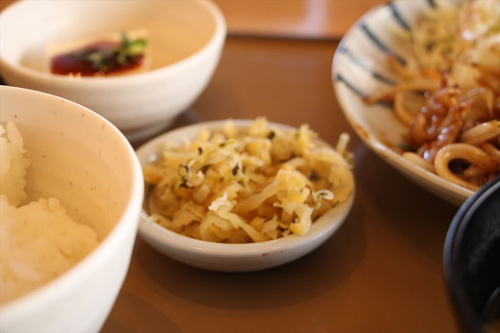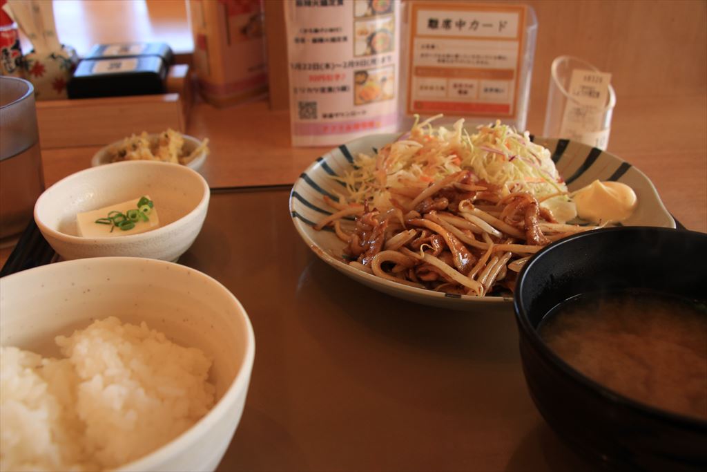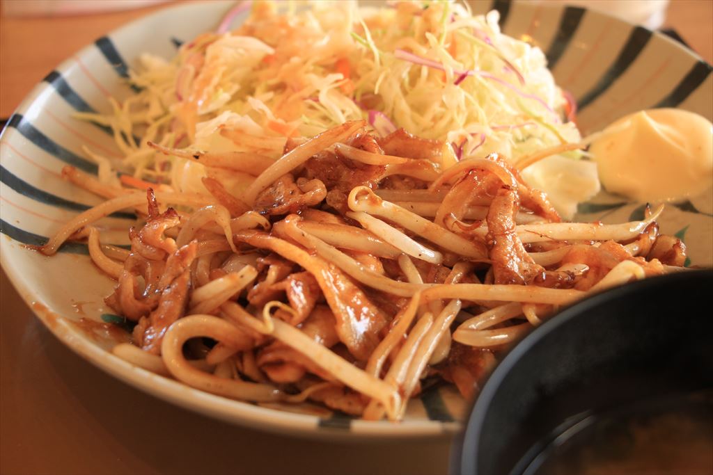生姜焼き定食。微妙黄色っぽくなったのはカメラの設定ミス。肉の主張が感じられないくらいのもやし感もヘルシー思考にはありがたい。