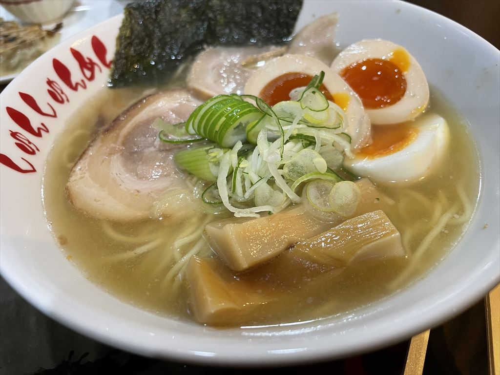 片町で食べたまー坊ラーメンを彷彿とするような優しい塩ラーメンです。減塩中だけど全然罪悪感なく、あっさり食べられるラーメン。もちろん、それを知っていてお店をチョイスしたんだけど。