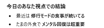 〆はたまご雑炊。焼きそばとかジャンキーなものも選択肢には浮かんだんだけど、塩分はあるけど脂質がなさそうな、たまご雑炊をチョイス。これでちょうど満腹になりました