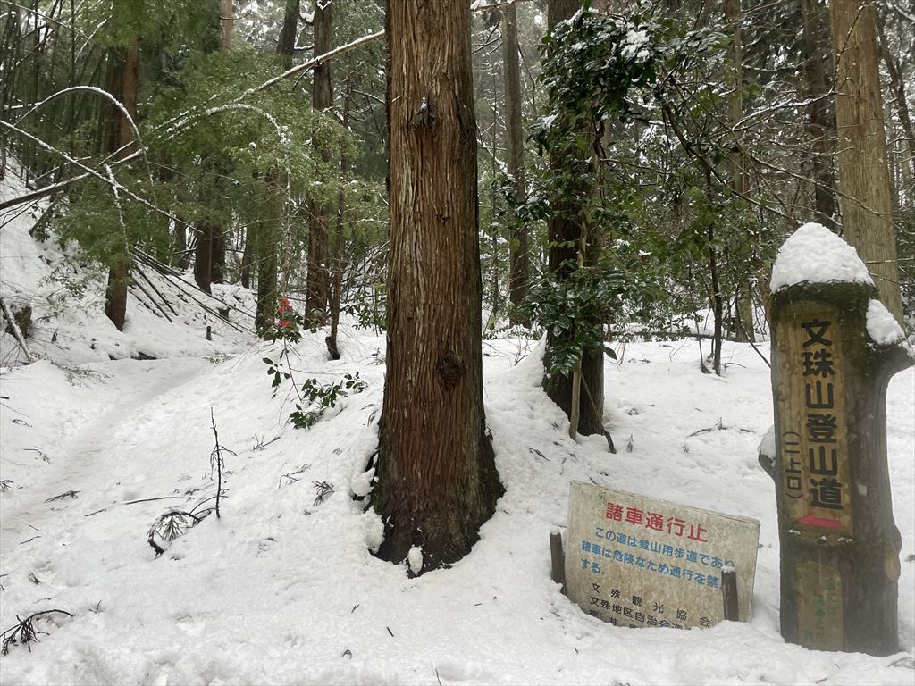 文殊山二上口を左のいつものルートへ。樹林帯なのと多くの人が歩くので少しずつ雪がすり減ってます