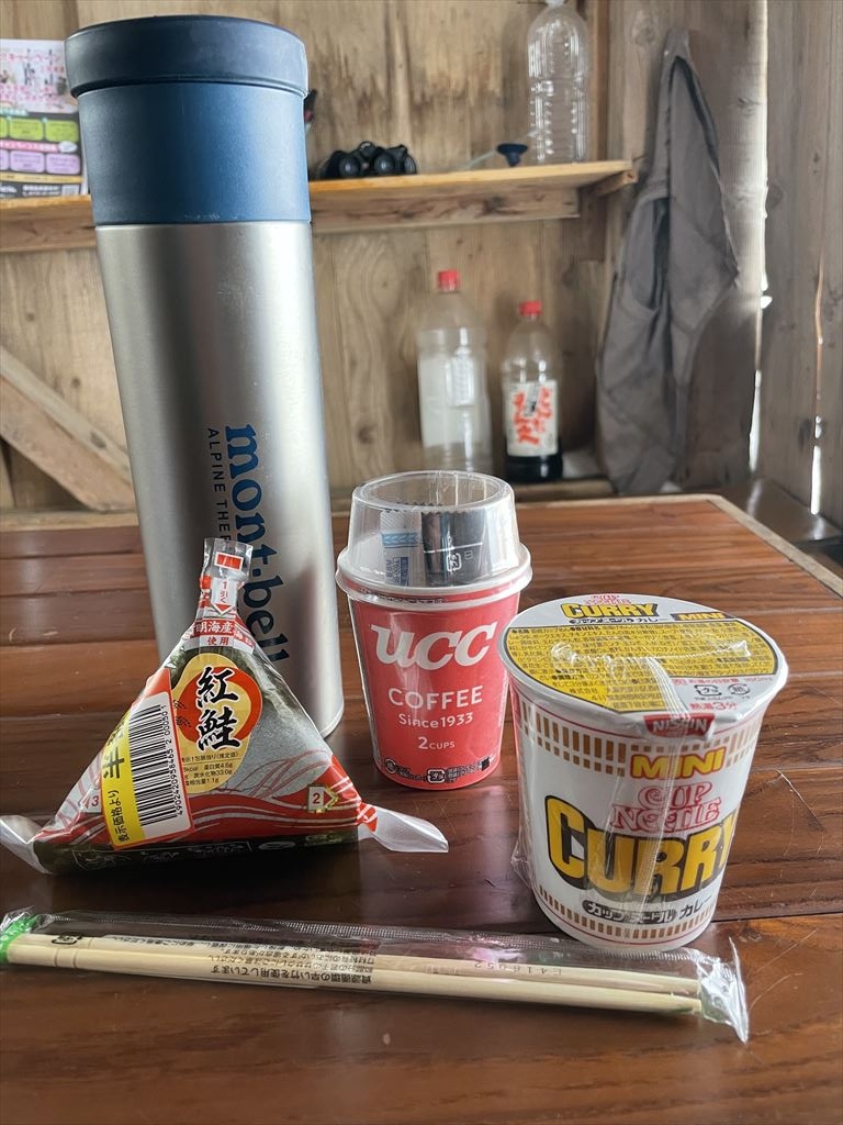 雪山文殊山の山頂でカレーラーメン