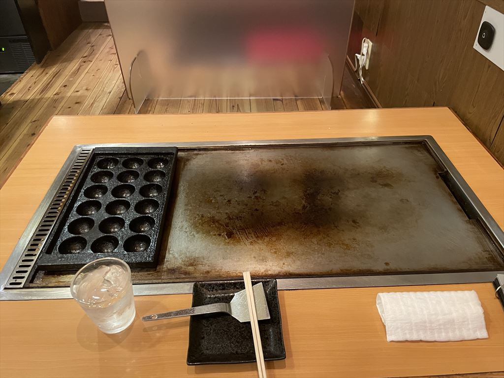 着席後。これから宴の舞台となる鉄板がワクワクを煽ります。(使わないんだけどw)