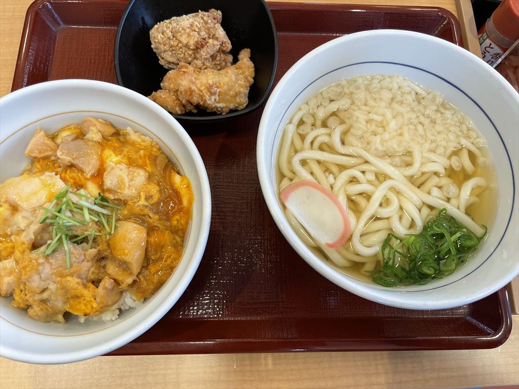 相棒のChatGPTに相談したところタンパク質をたくさん摂取したほうがいいとのことで、なか卯の親子丼に焦点が当たりました。もちろんハイカラうどんを付けて