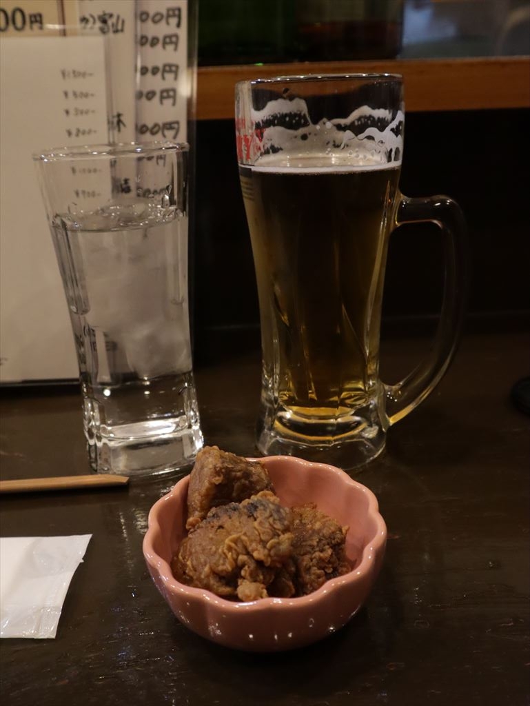 2026年初ビール。こんなに苦かったっけ?チェイサーのお水も忘れません。