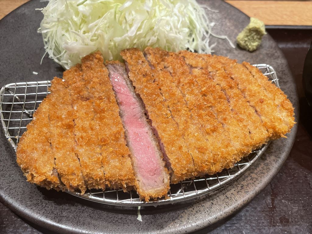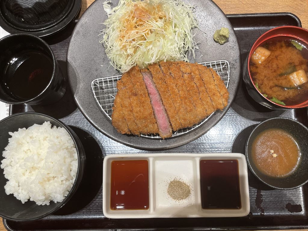 ですね。当たり前だけど牛カツは脂が少なくて物足りなかった。豚カツに慣れてるから無意識に脂を期待しちゃうだけかもしれないが。