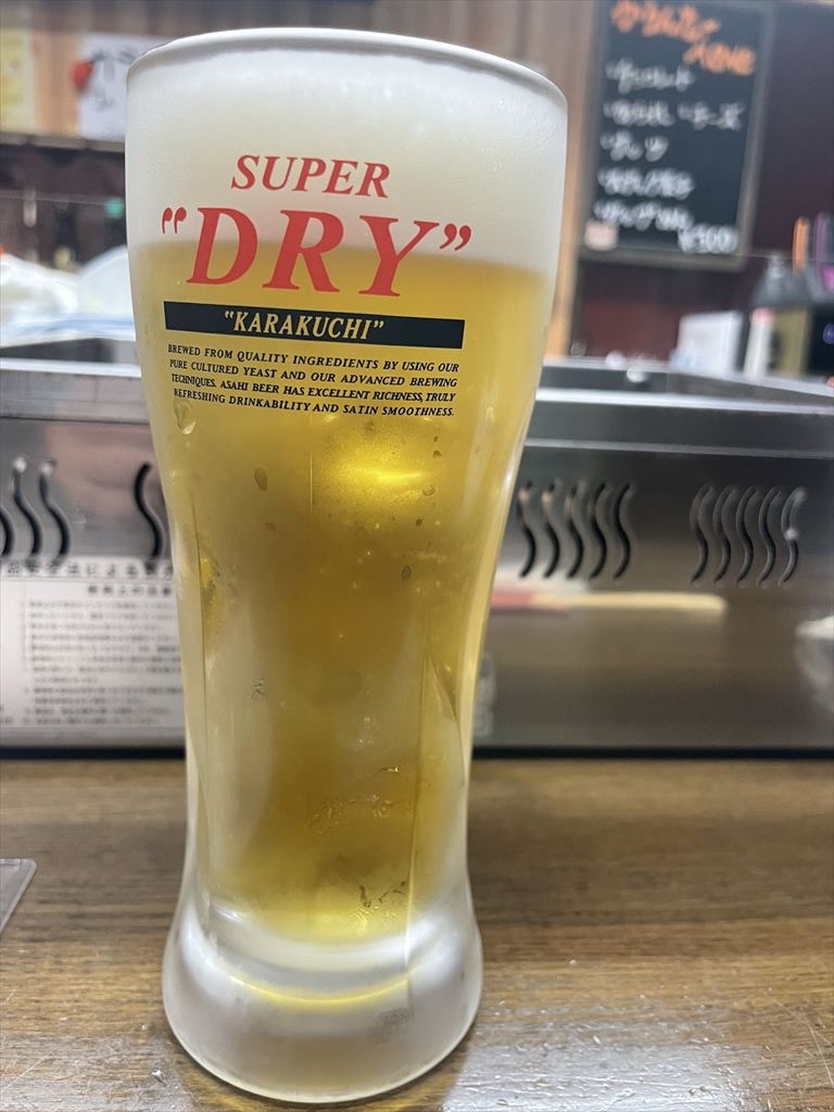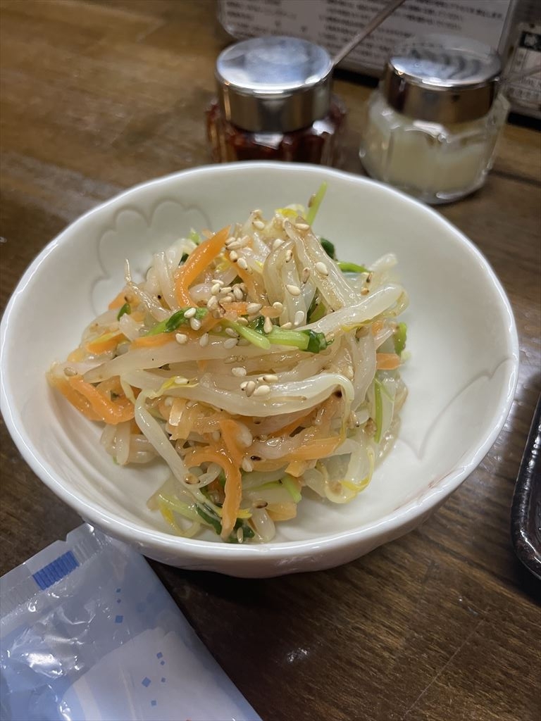 前回は鶏むね肉のサラダとか食べてたけど、今回はいきなり生ビールをナムルをあてに頂きます。お店が混雑しており、ナムル以外にも出してもらった付け出しをあてにビールをゴクゴク頂きます。苦く感じるけどめっちゃくちゃ美味い!我慢したほうが酒が美味くなる!