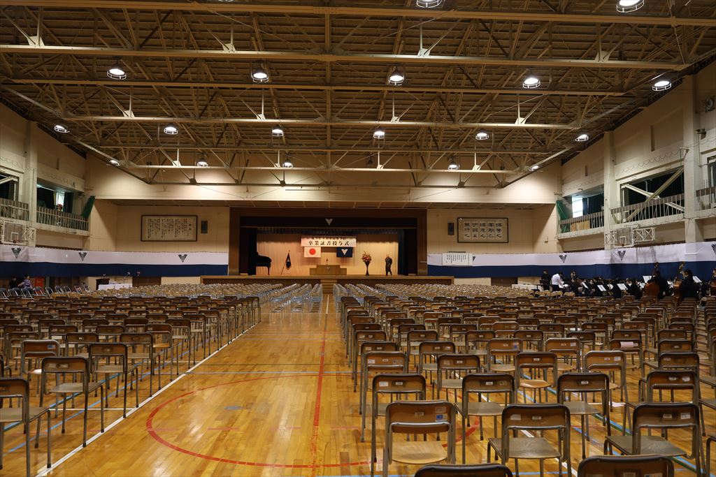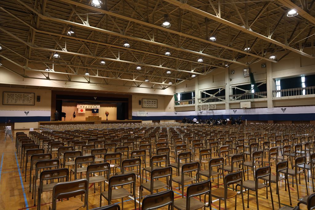 広い体育館に椅子を並べるのも昔から変わらない風景。