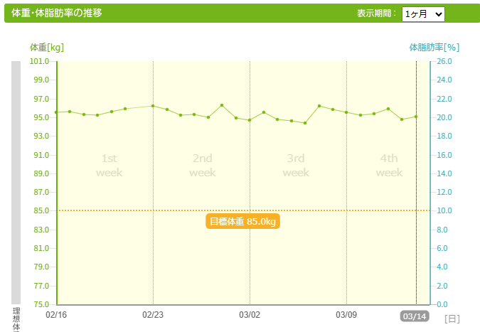 体重は基本横ばいです。これが停滞期なのか改善が必要なのかはよくわからない