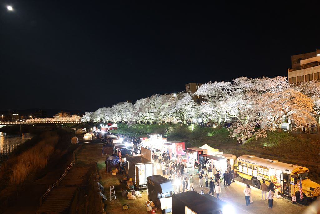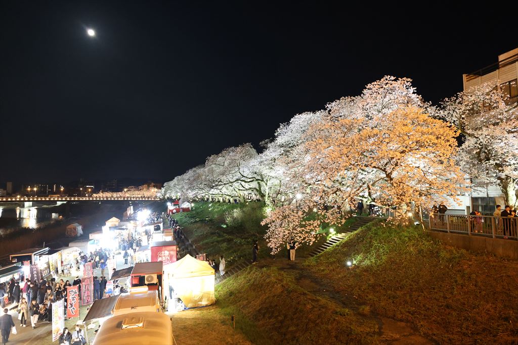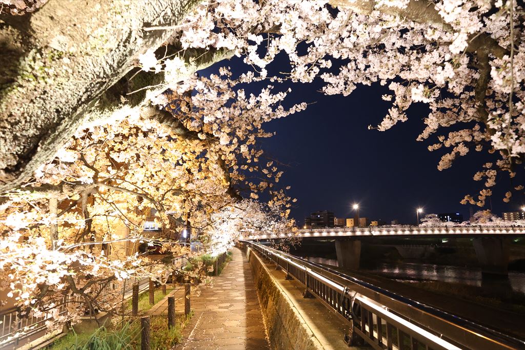 足羽川の夜桜撮影写真をいくつか紹介。今年の桜は天気の都合もあり短命だった。