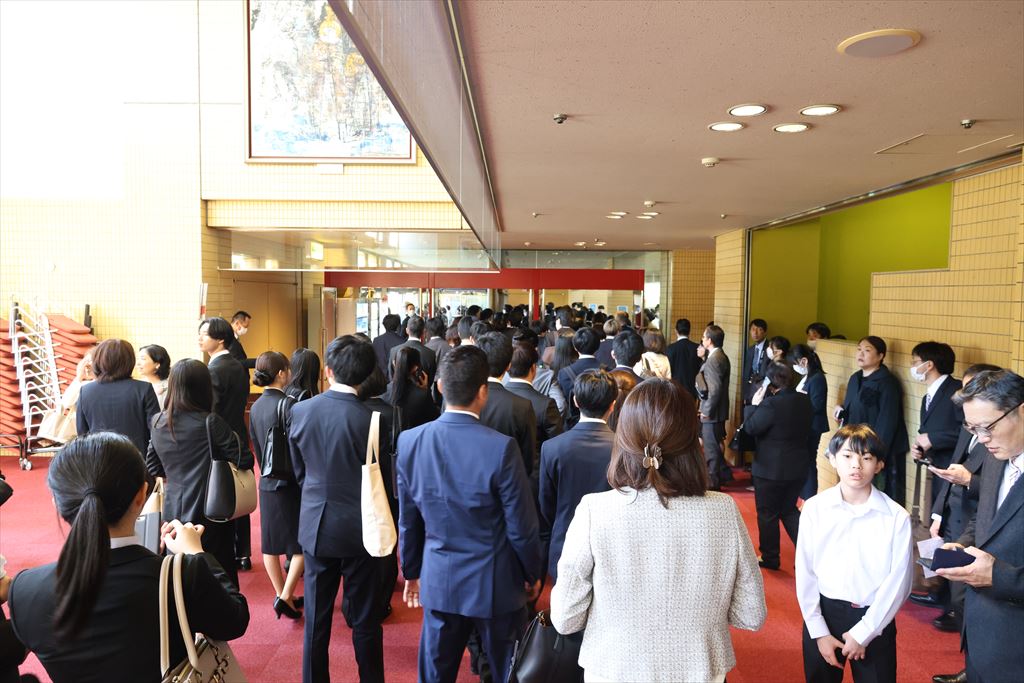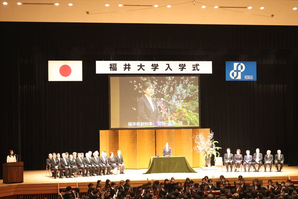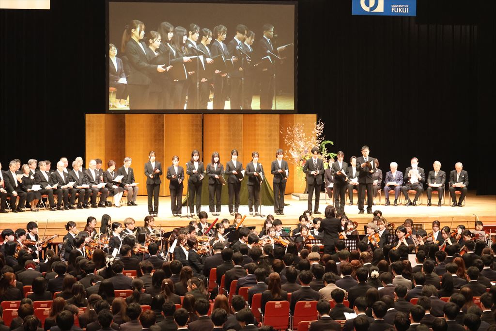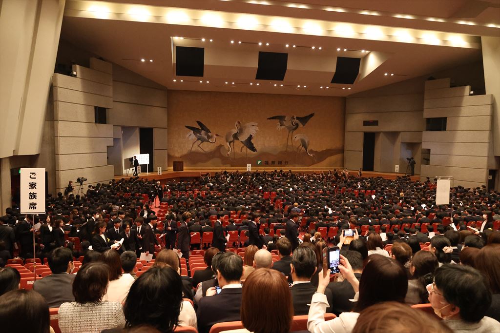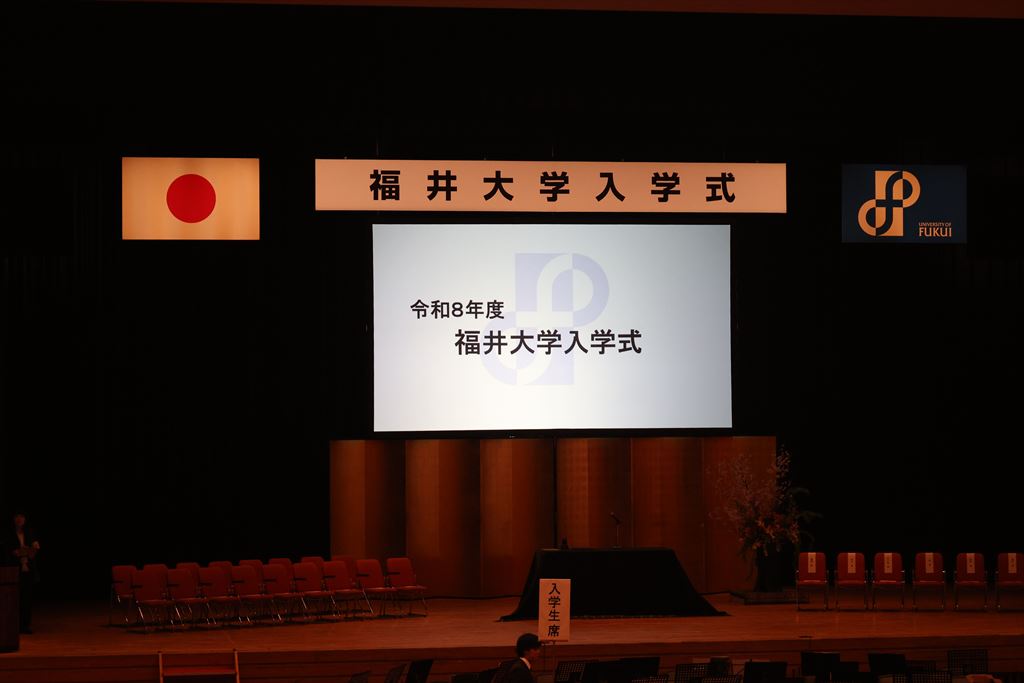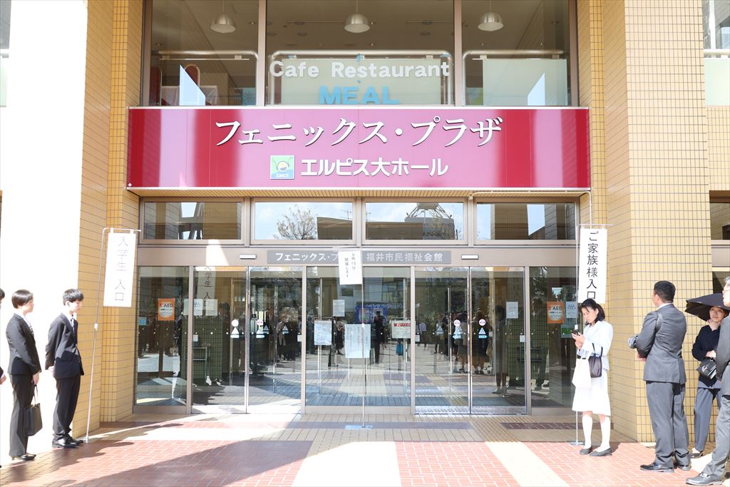 フェニックスプラザって初めて入ったけど、結構広いんだね。学生列だけで1000人くらい座れるキャパがあったから、全部で2000人くらいは座れるのかな?福井大学に2000人収容できる講堂とかないから、フェニックスプラザが会場に選ばれてるんでしょうね。福井大学からも近いし。